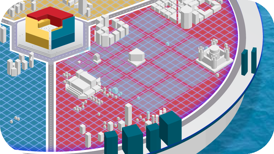 Heritage 2Oasis® (H2O) will be presented, in the future, in the form of a virtual city, characterized by a series of common services, where each operator can have a building (house, building, skyscraper, castle, boat, historic residence, etc.) or an office within thematic buildings and thus promote initiatives and offer products and services on the market.